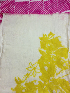 During my first semester of fourth year I had an innovation project to complete. I chose to push my process and fabric I was using by creating new and interesting textures to print onto. I created these new textiles by experimenting with a needle punch machine to combine fabrics and colours.